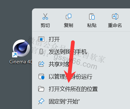 35,在桌面找到并选中Cinema 4D软件图标,点击鼠标右键,点击“打开文件所在的位置”