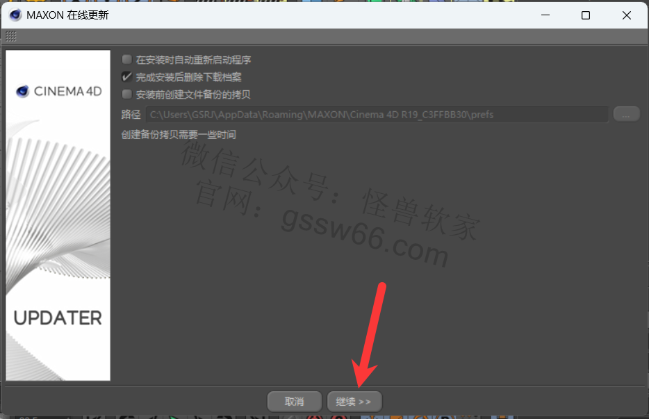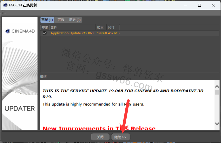 安装Cinema 4D更新包,从R19.024更新到R19.068(自行选择是否安装)