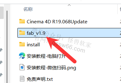 16,打开之前解压好的“Cinema 4D R19”文件夹,双击打开“fab_v1.9”文件夹