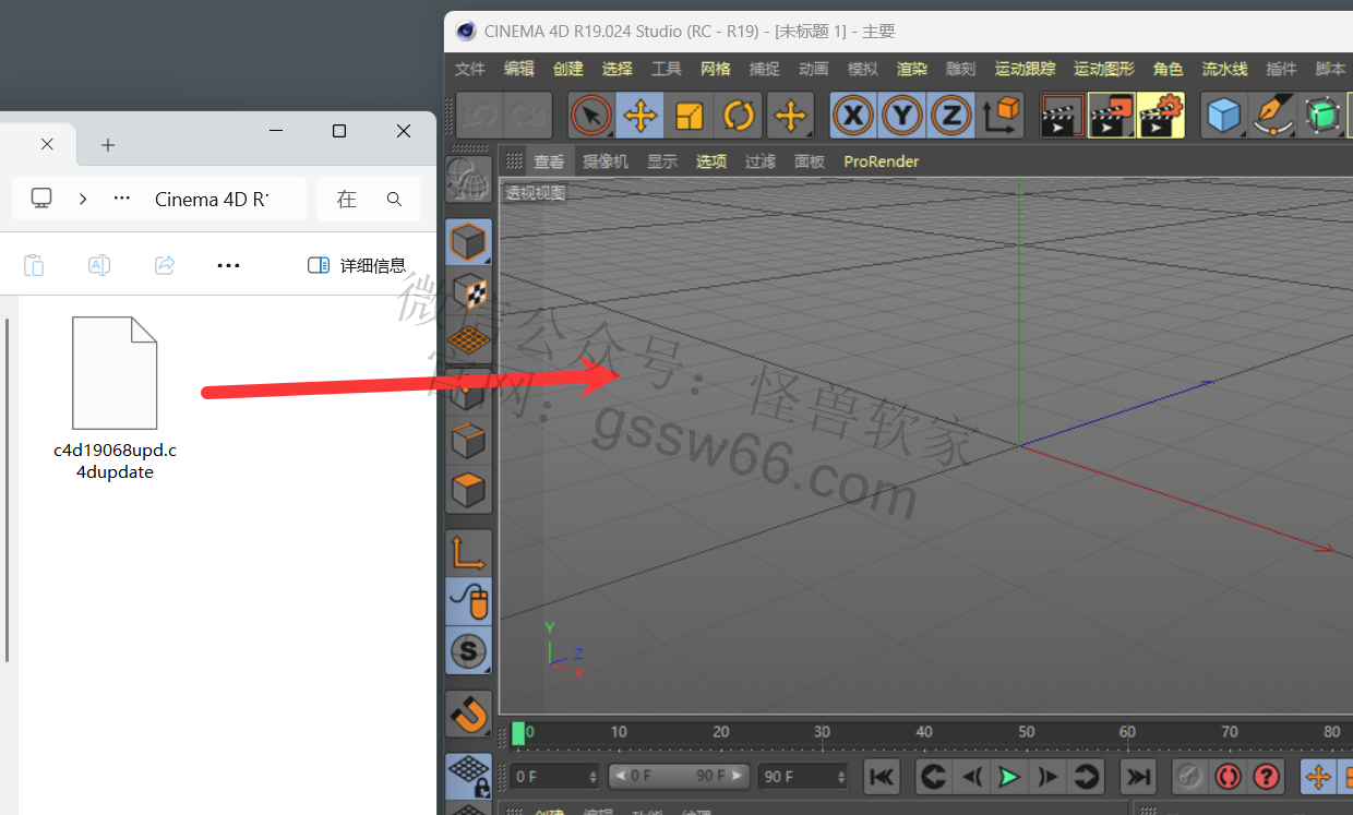 28,将“c4d19068upd.c4dupdate”文件拖动到Cinema 4D软件内