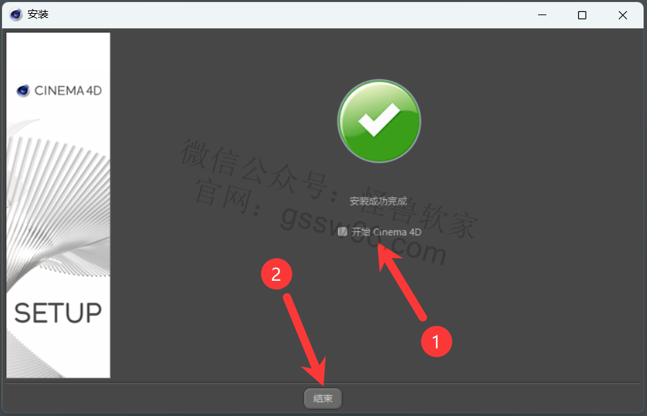 15,取消勾选“开始Cinema 4D”,点击“结束”