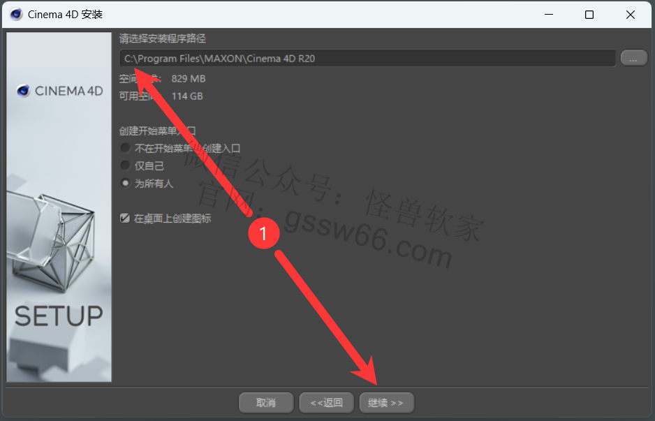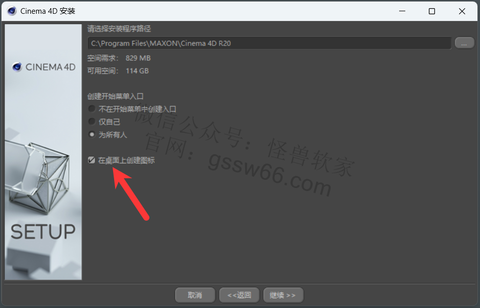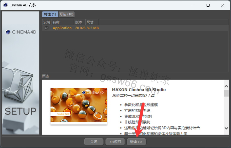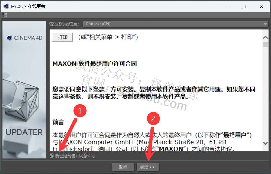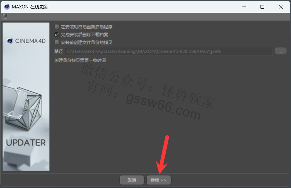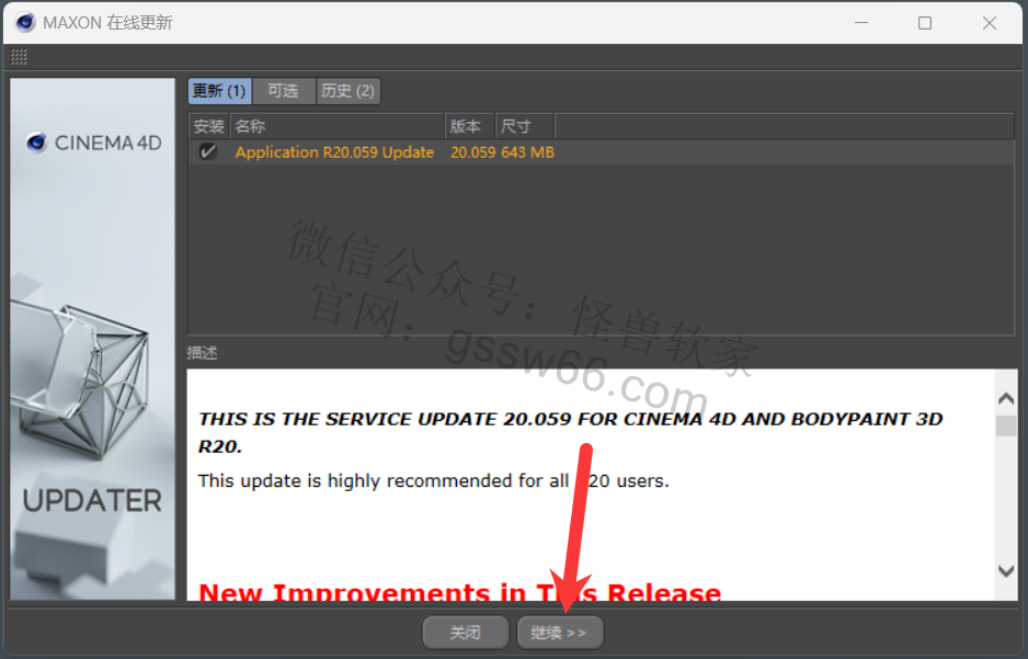 安装Cinema 4D更新包,从R20.026更新到R20.059(自行选择是否安装)