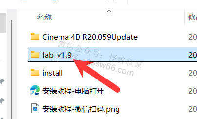 16,打开之前解压好的“Cinema 4D R20”文件夹,双击打开“fab_v1.9”文件夹