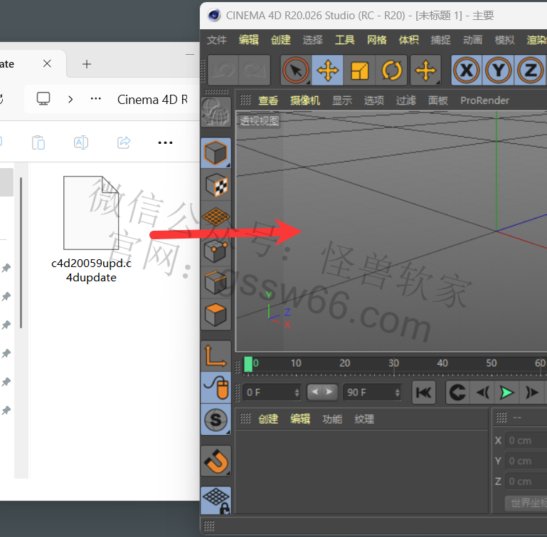 25,将“c4d19068upd.c4dupdate”文件拖动到Cinema 4D软件内