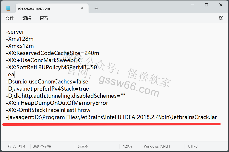 18,在文档的尾部加上“-javaagent:IntelliJ IDEA安装路径\JetbrainsCrack.jar”(如:-javaagent:D:\Program Files\JetBrains\IntelliJ IDEA 2018.2.4\bin\JetbrainsCrack.jar)