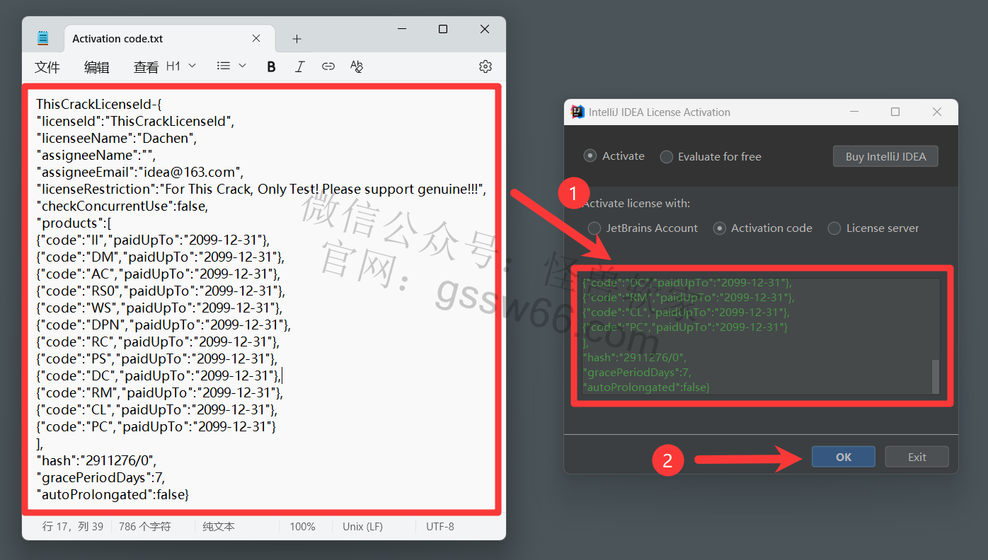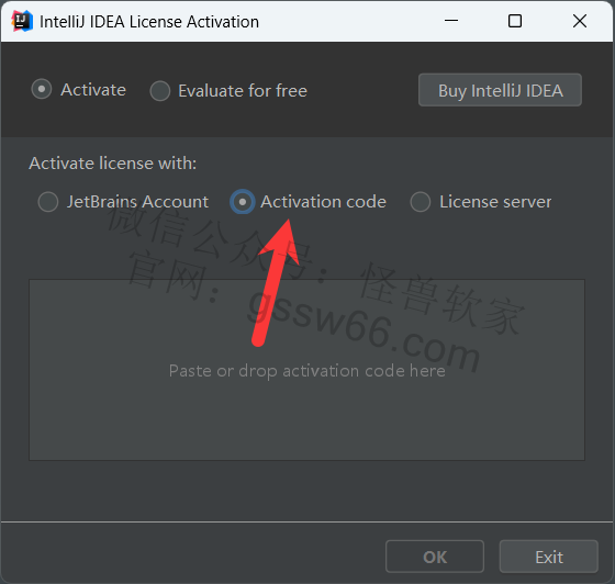30,复制全部内容粘贴到“Activation code”框内,点击“OK”