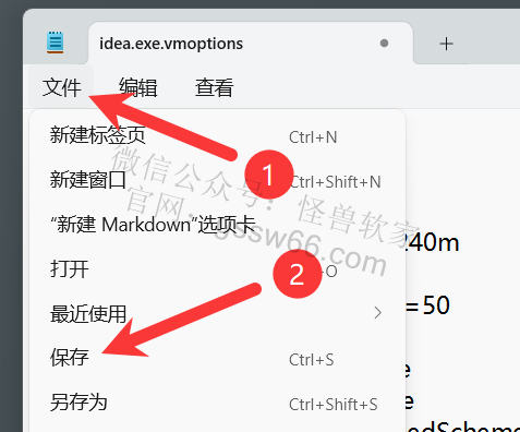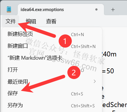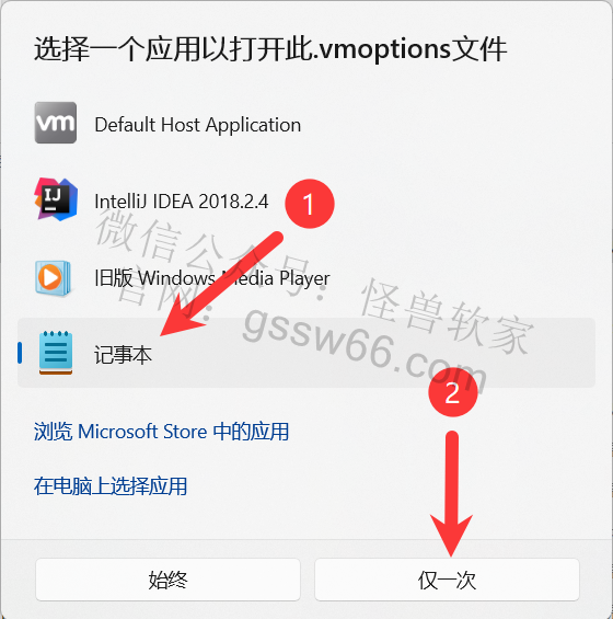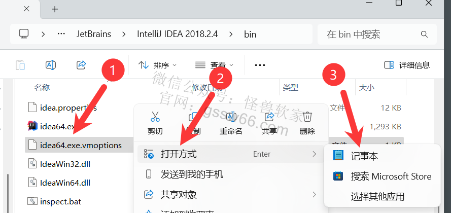 20,在同一目录下找到“idea64.exe.vmoptions”文件,选中此文件,点击鼠标右键,点击“打开方式”,点击“记事本”