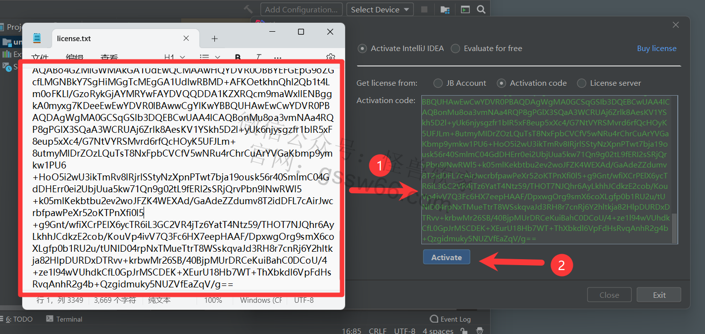 38,复制全部内容粘贴到“Activation code”框内,点击“Activate”