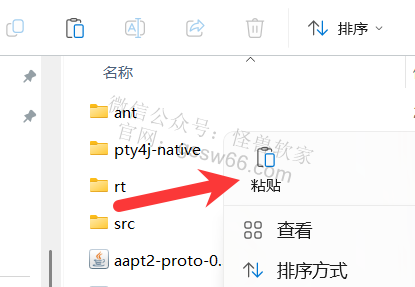 15,在打开的文件夹空白处,点击鼠标右键,点击“粘贴”,或者按键盘上的“Ctrl”+“V”粘贴刚才复制的文件