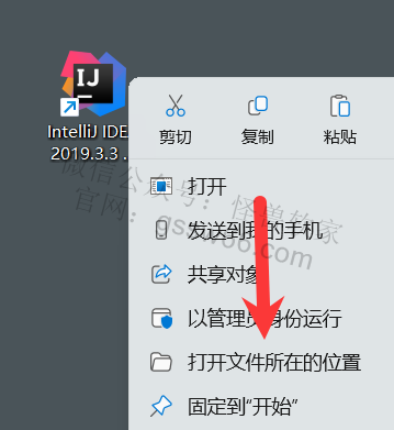 14,在桌面上找到并选中“IntelliJ IDEA”软件图标,点击鼠标右键,点击“打开文件所在的位置”