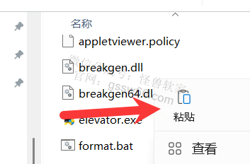 46,在打开的文件夹空白处,点击鼠标右键,点击“粘贴”,或者按键盘上的“Ctrl”+“V”粘贴刚才复制的文件