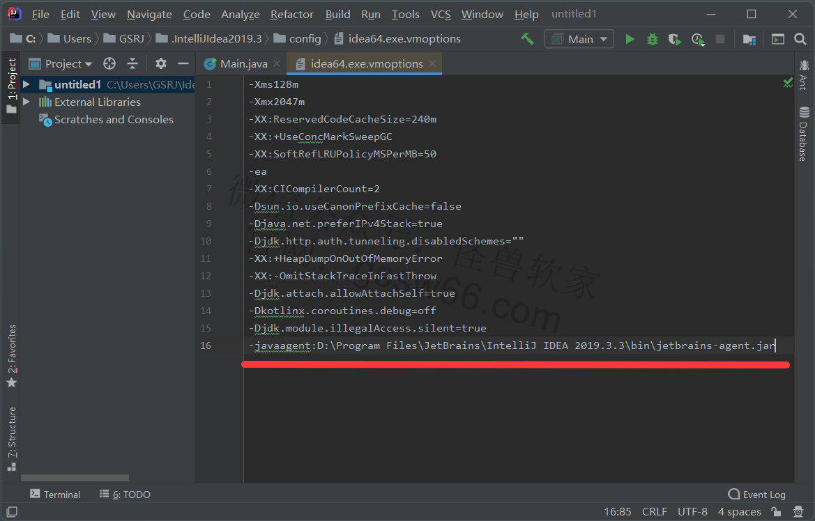 30,在文档的尾部加上“-javaagent:IntelliJ IDEA安装路径\jetbrains-agent.jar”(如:-javaagent:D:\Program Files\JetBrains\IntelliJ IDEA 2019.3.3\bin\jetbrains-agent.jar)