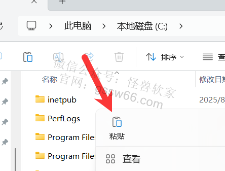 23,在文件夹空白处,点击鼠标右键,点击“粘贴”,或者按键盘上的“Ctrl”+“V”粘贴刚才复制的文件