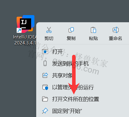 21,在桌面找到并选中IntelliJ IDEA软件图标,点击鼠标右键,点击“打开文件所在位置”