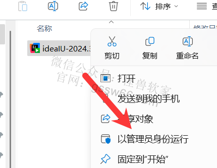04,找到并选中安装程序“ideaIU-2024”,点击鼠标右键,点击“以管理员身份运行”