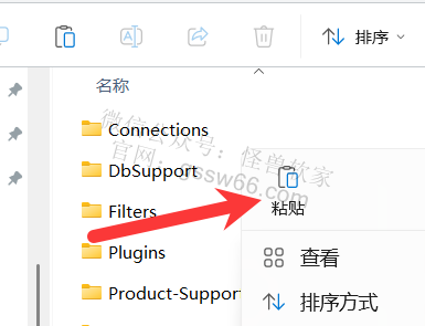 21,打开软件的安装路径文件夹,在文件夹空白处,点击鼠标右键,点击“粘贴”,或者按快捷键“Ctrl”+“V”粘贴刚才复制的文件(若提示需要提供管理员权限,勾选“为所有…”,点击“继续”)
