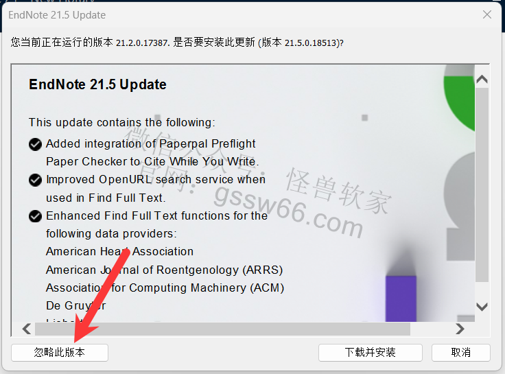 32,提示更新版本,点击“忽略此版本”,如再有此更新窗口,依然点击“忽略此版本”