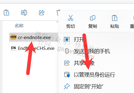 27,返回“Crack”文件夹,找到并选中“cr-endnote.exe”文件,点击鼠标右键,点击“以管理员身份运行”