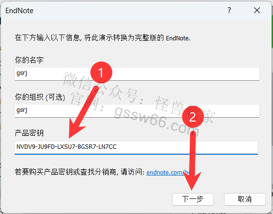 30,返回之前打开的程序,粘贴Key到密钥栏,点击“下一步”