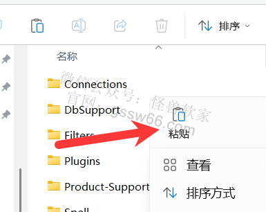 21,打开软件的安装路径文件夹,在文件夹空白处,点击鼠标右键,点击“粘贴”,或者按快捷键“Ctrl”+“V”粘贴刚才复制的文件(若提示需要提供管理员权限,勾选“为所有…”,点击“继续”)