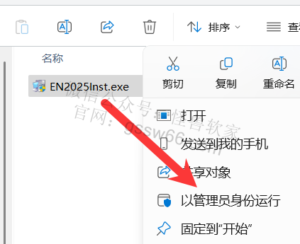 04,找到并选中EndNote 2025安装程序,点击鼠标右键,点击“以管理员身份运行”