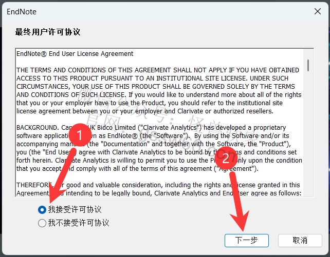 26,选择“我接受许可协议”,点击“下一步”