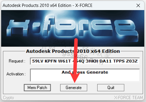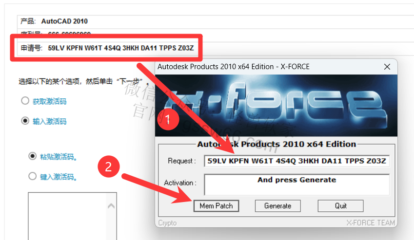 26,把CAD申请号复制并粘贴到注册机Request处,点击“Mem Patch”