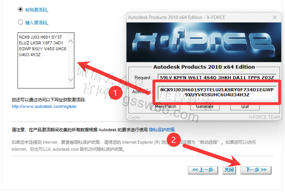 29,把激活码复制并粘贴到CAD激活码框内,点击“下一步”
