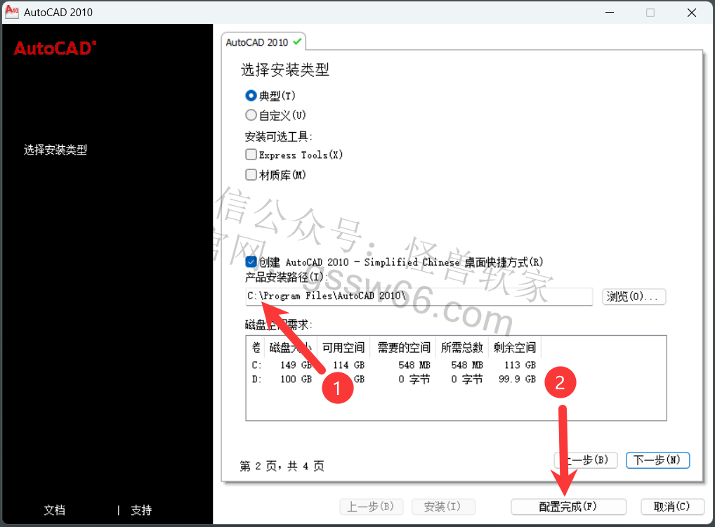 15,把安装路径首字母C改为D(安装路径不要出现中文),点击“配置完成”