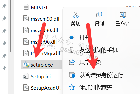 04,找到并选中“setup.exe”安装程序,点击鼠标右键,点击“以管理员身份运行”