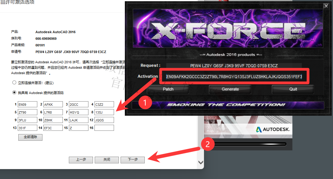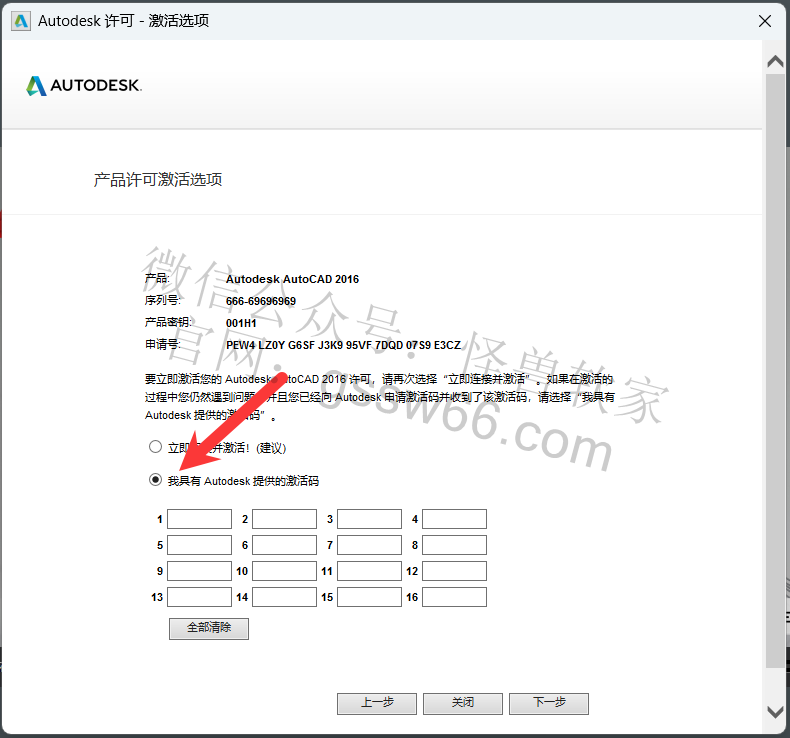 27,把激活码复制并粘贴到CAD激活码框内,点击“下一步”