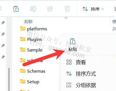 16,在打开的文件夹空白处,点击鼠标右键,点击“粘贴”,或者使用快捷键“Ctrl”+“V”粘贴