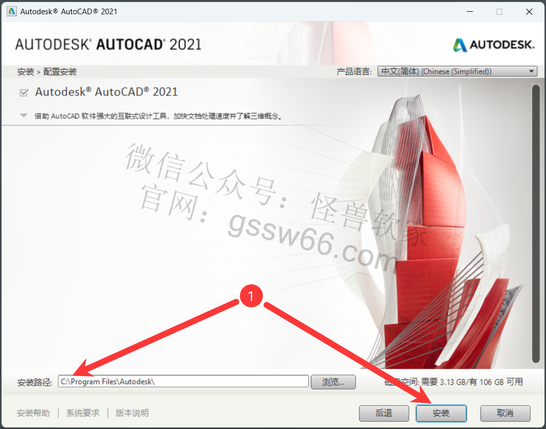 08,无须更改安装位置,点击“安装”,快速更改安装位置到D盘,把安装路径首字母C改为D即可(安装路径不要出现中文),点击“安装”。本例安装在D盘。