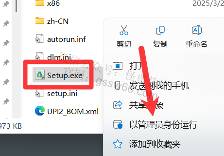 04,找到并选中“Setup.exe”安装程序,点击鼠标右键,点击“以管理员身份运行”