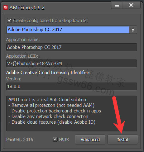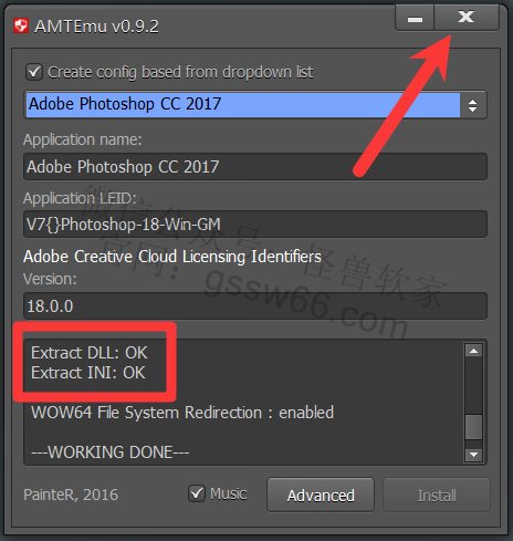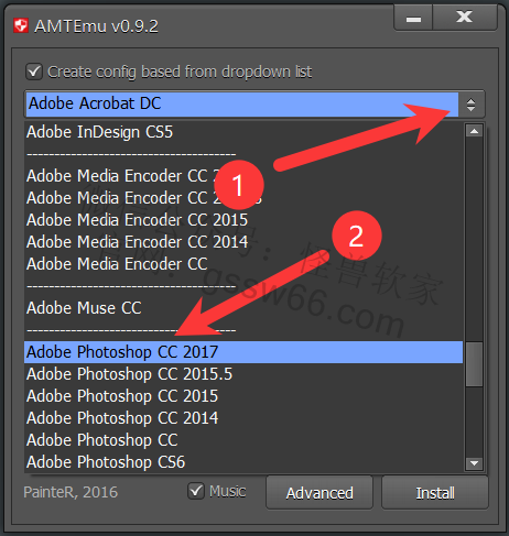 11,点击下拉栏,选择“Adobe Photoshop CC 2017”