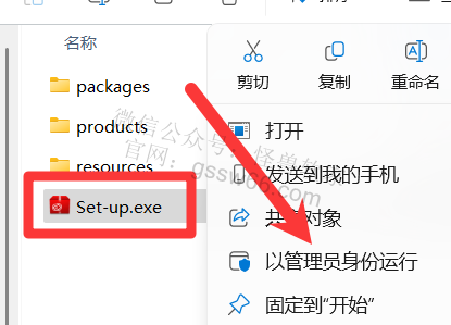04,找到并选中“Set-up.exe”安装程序,点击鼠标右键,点击“以管理员身份运行”