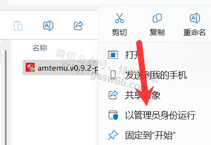 10,找到并选中“amtemu.v0.9.2-painter.exe”文件,点击鼠标右键,点击“以管理员身份运行”
