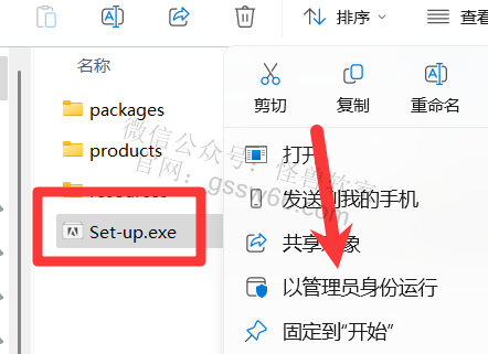 04,找到并选中“Set-up.exe”安装程序,点击鼠标右键,点击“以管理员身份运行”
