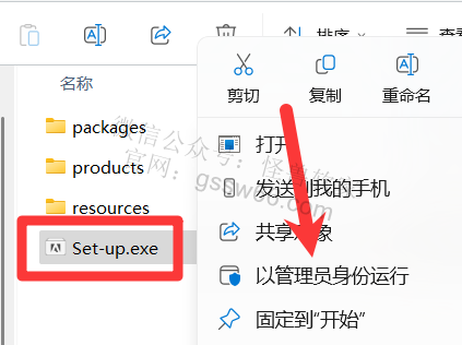 04,找到并选中“Set-up.exe”安装程序,点击鼠标右键,点击“以管理员身份运行”