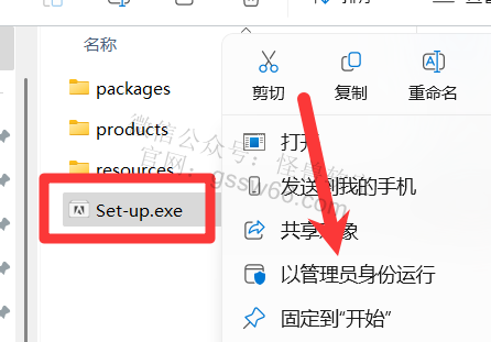 04,找到并选中“Set-up.exe”安装程序,点击鼠标右键,点击“以管理员身份运行”